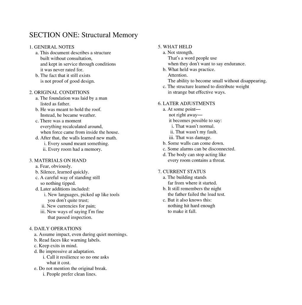 “he was meant to hold the roof, instead he became weather.” I relate to this. This is a powerful piece, I love the way you’ve structured it, so creative and clever